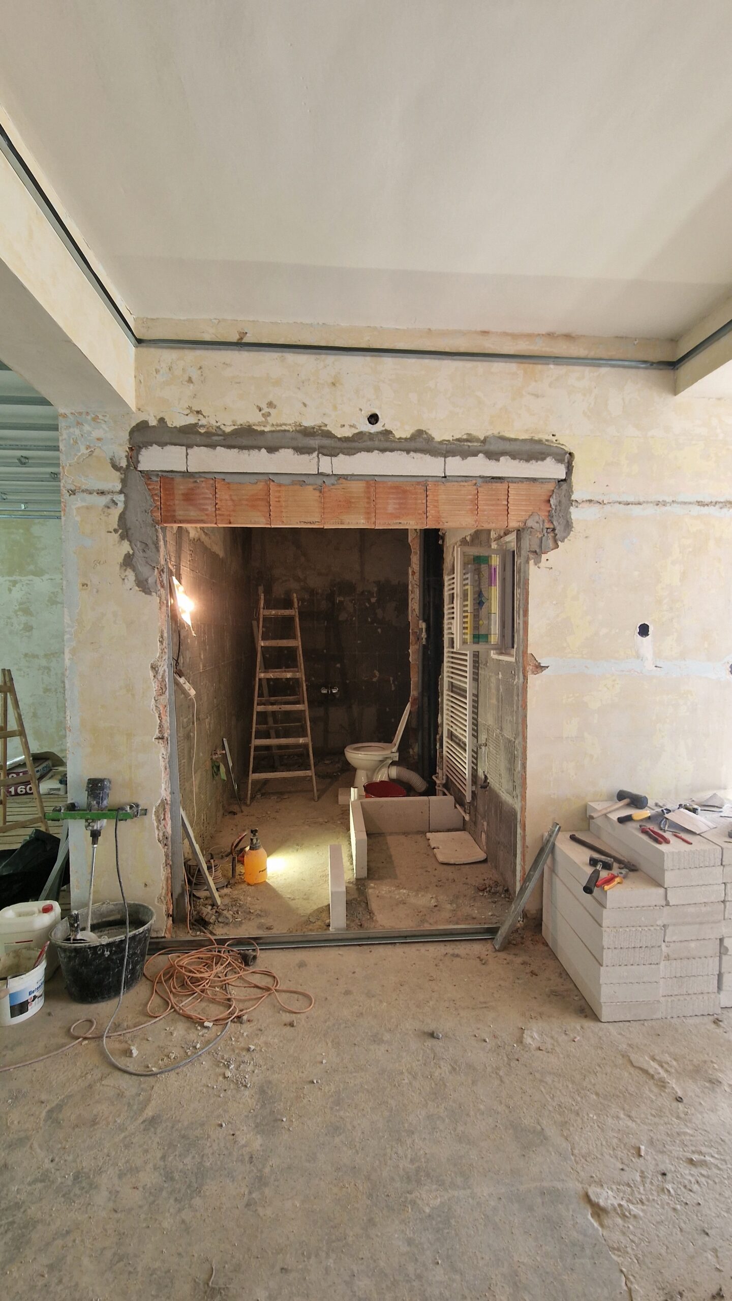 Bourací a stavební práce – úpravy dispozice, odstranění příček, příprava konstrukcí.